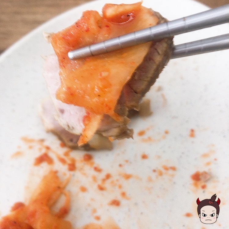 고기가 조금 퍽퍽하긴 했지만 무김치?가 조금 특이한 맛이어서 먹을 만 했어요.