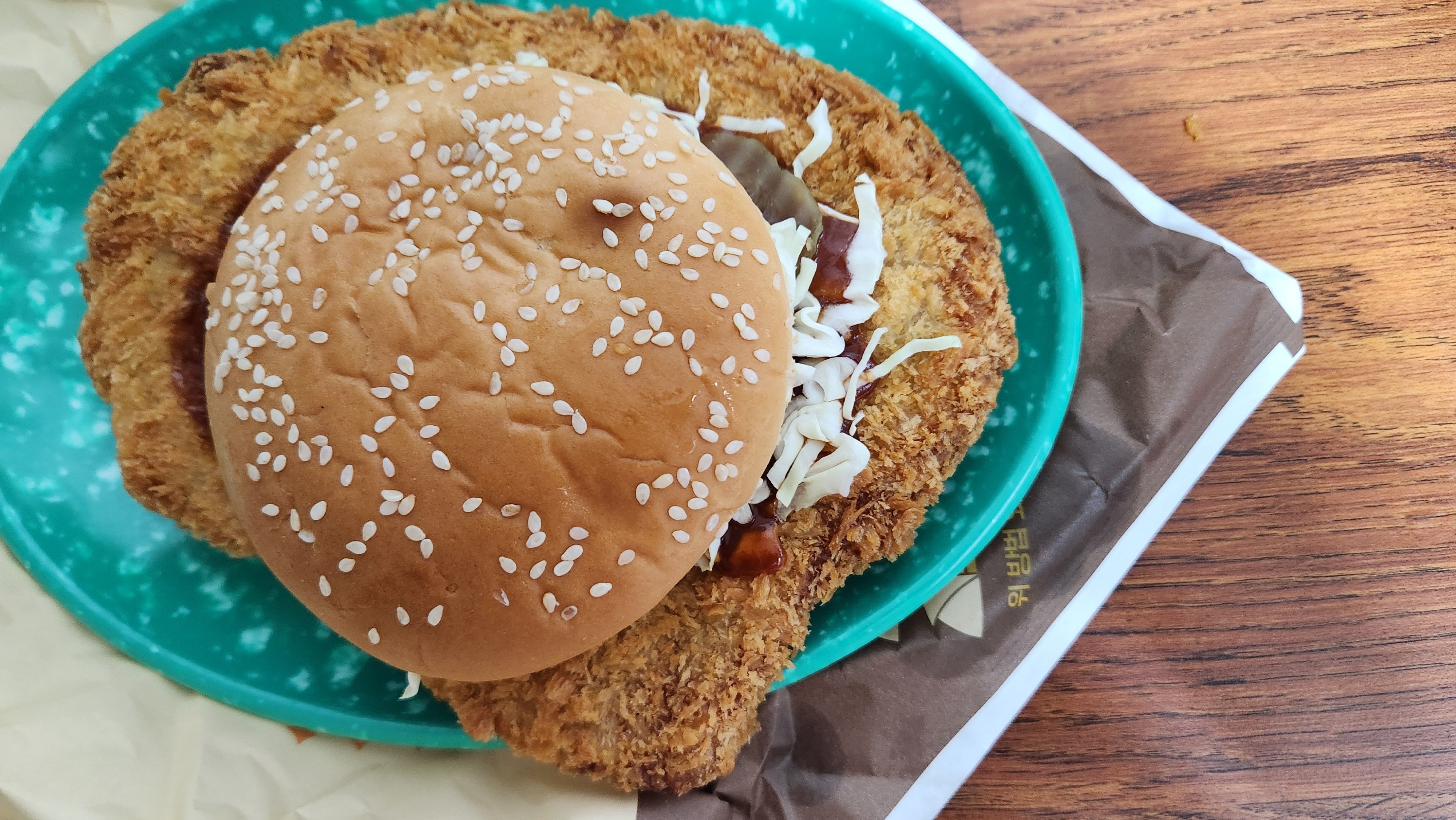 크기는 왕돈까스 버거 이름 답게 제법 큰사이즈입니다.