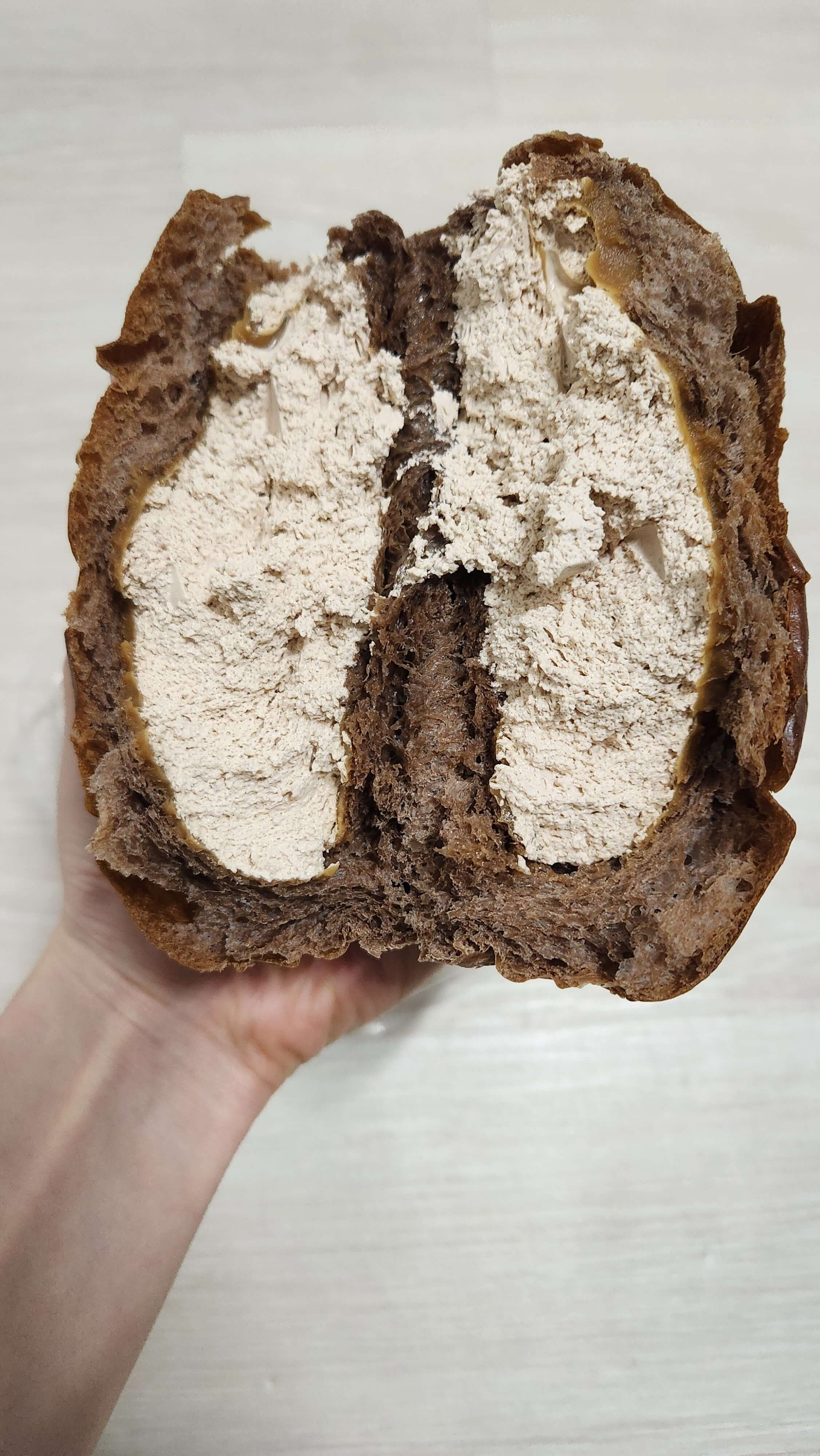 반으로 갈라보니깐 역시 연세우유크림빵 시리즈답게 빵빵한 크림과 크림치즈가 얇게 같이 들어있네요!