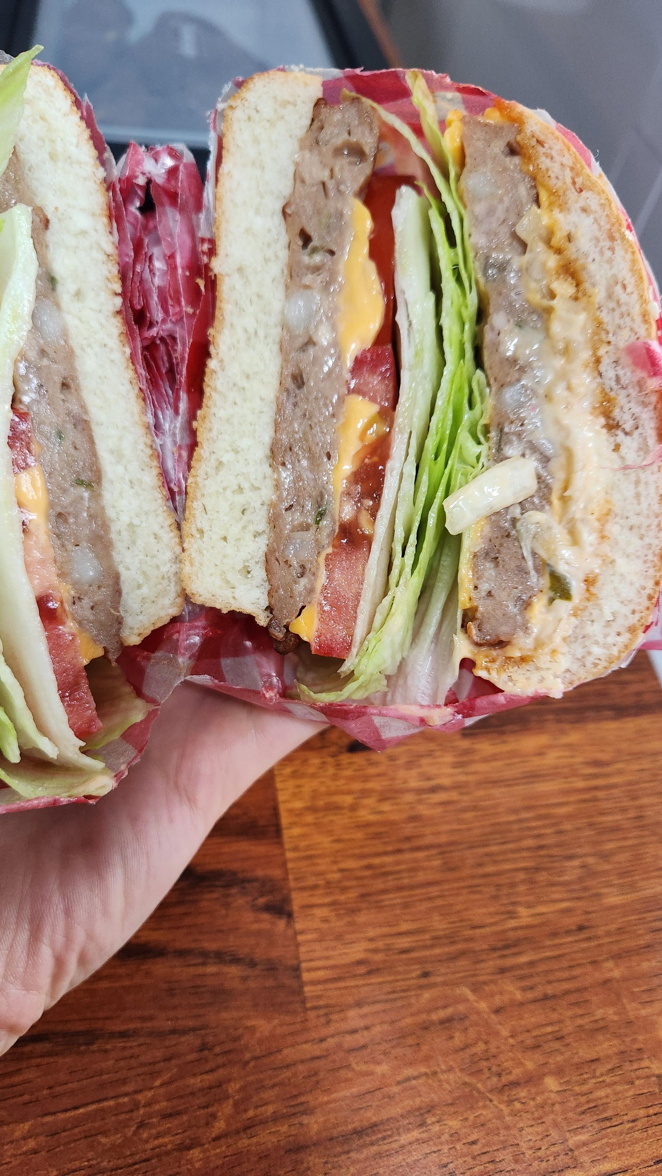 사실 패티가 더블이긴한데 가격이 저렴한 만큼 패티는 고기 보다는 절단육?? 이런게 많아서