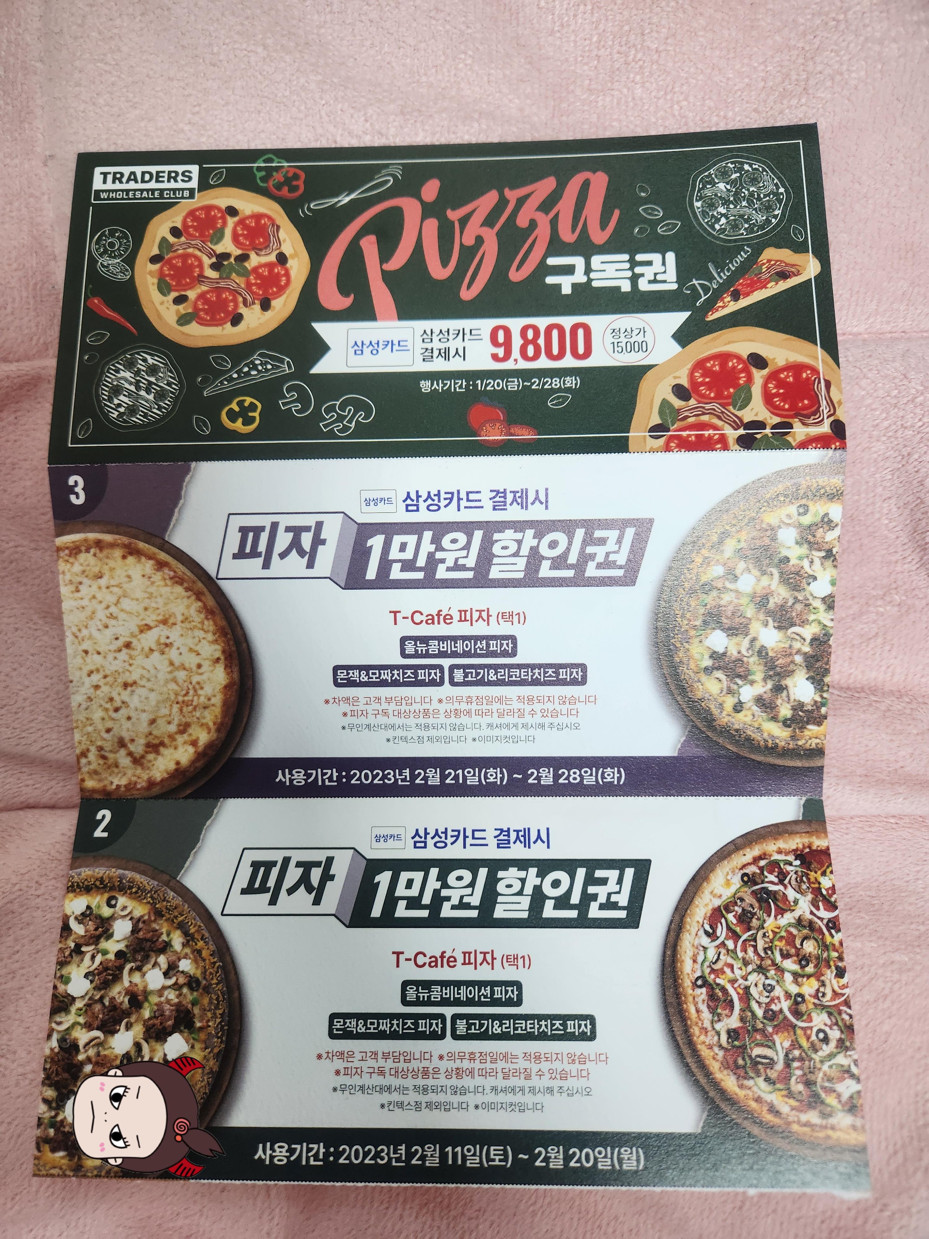 삼성카드를 가지고 있으면 피자 구독권이라는 피자 1만원 할인권 3매를 9,800원에 구매가능합니다.