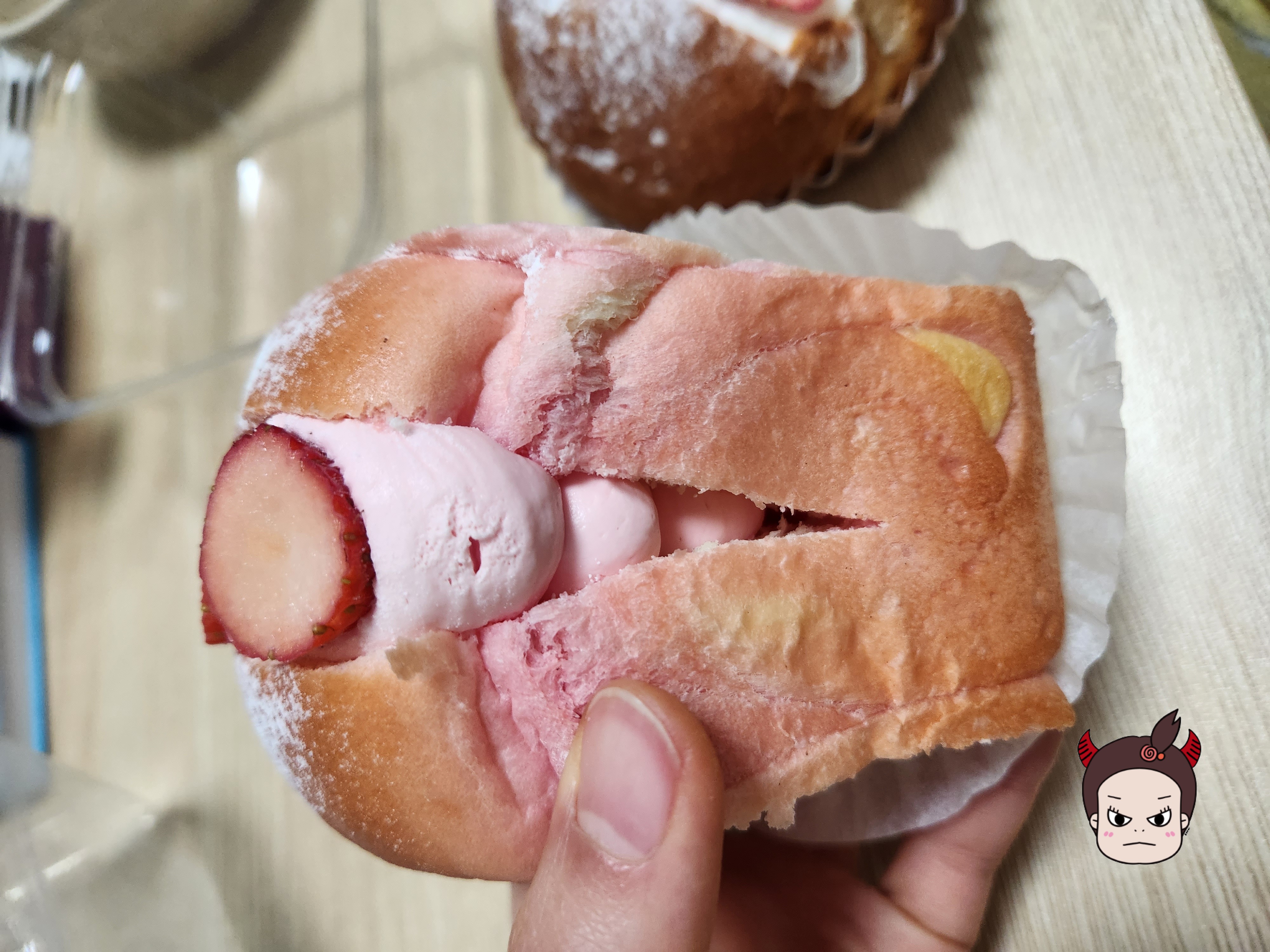 빵 자체가 딸기로 반죽한건가.... 잘 모르겠지만 딸기 맛이 나는 것 같아요.