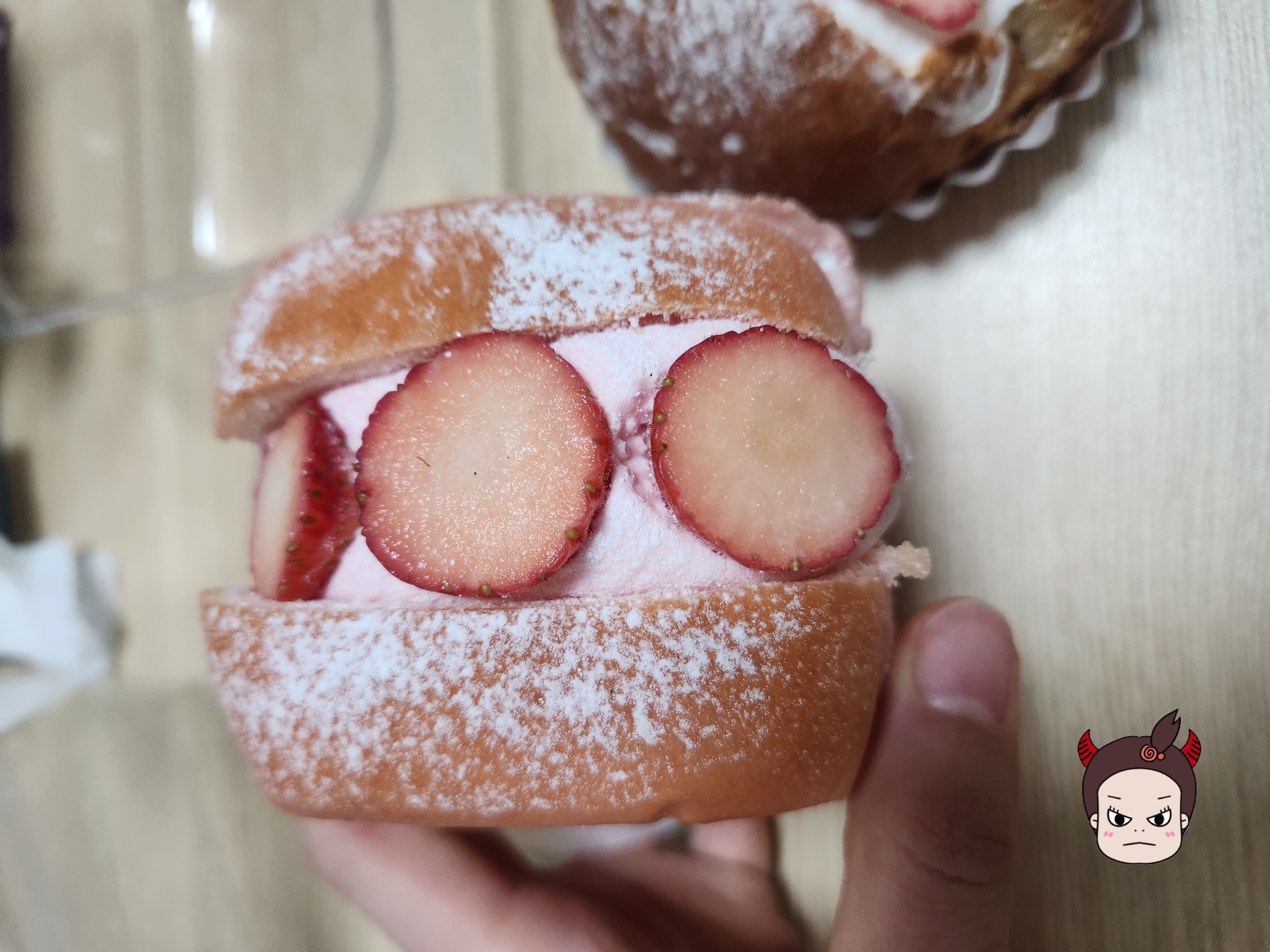 이거는 그래도 딸기식빵에 딸기생크림 그리고... 역시나 엄청 얇은 딸기.. 한조각
