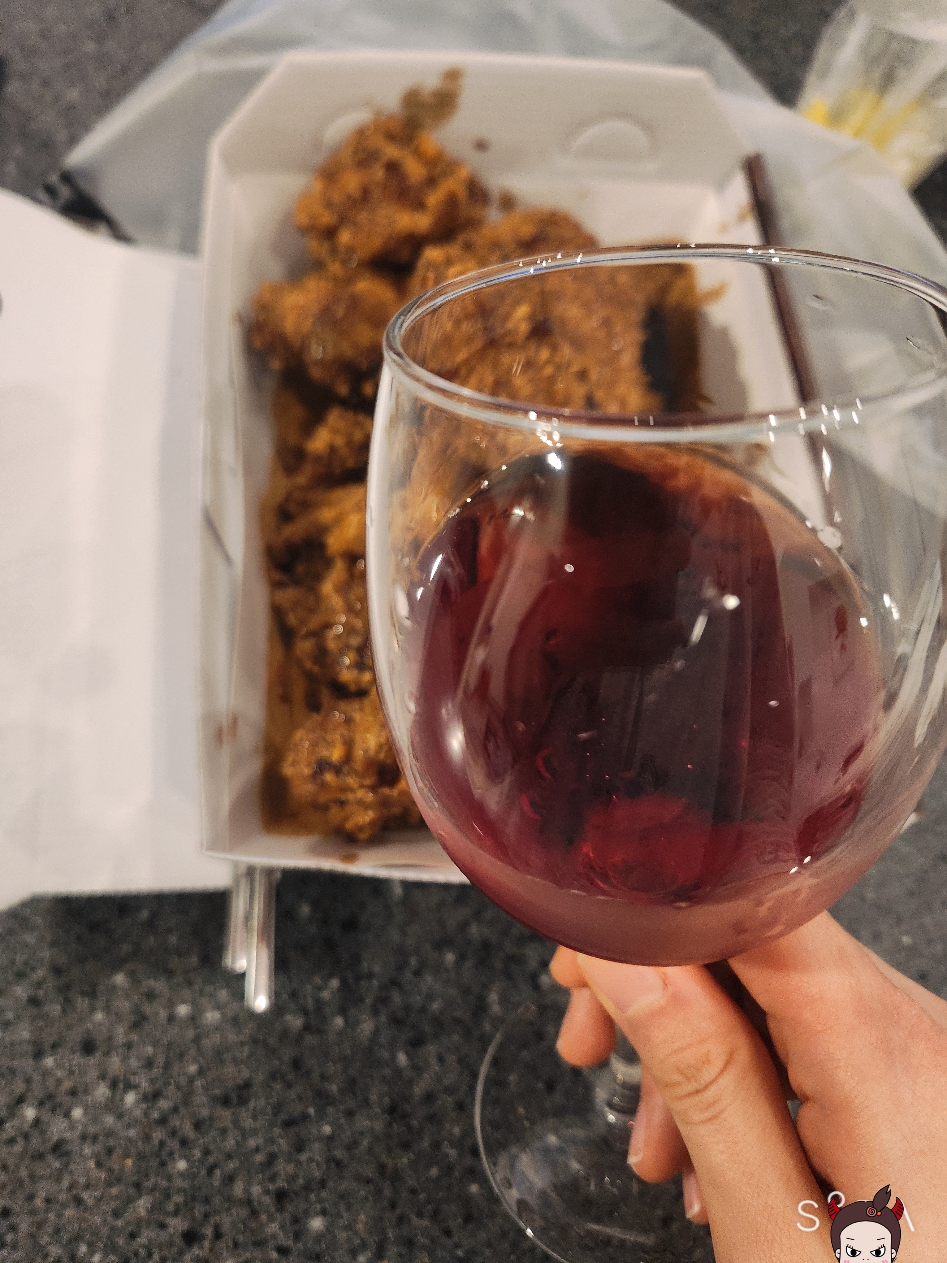 치킨을 와인과 함께 먹어봤는데 별루였어요. 그냥 맥주와 드세요 ㅎㅎ