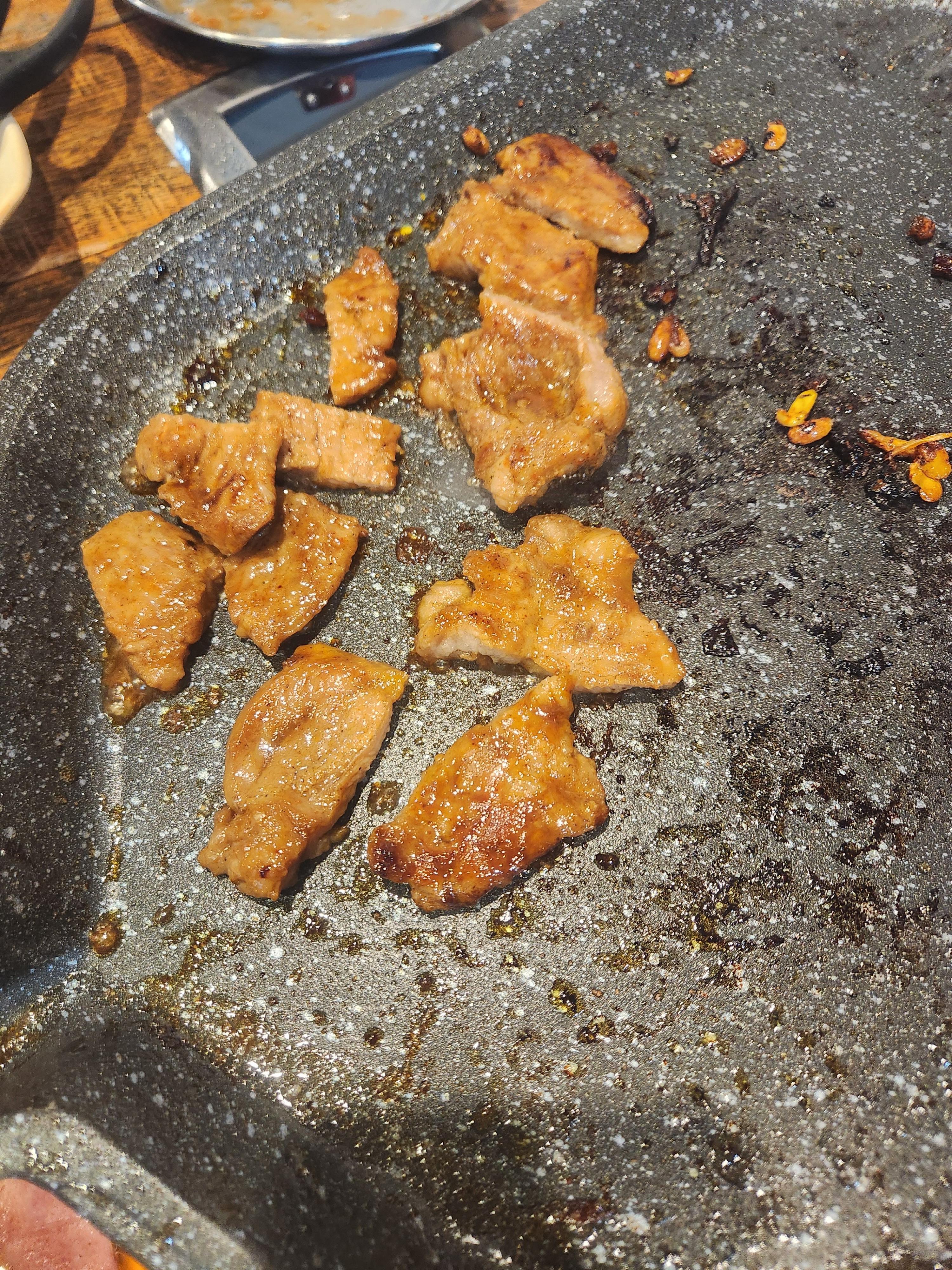 불판은 화력이 좋아서 금방금방있구요. 얇은 삼겹살이 있으니깐 좋더라구요.