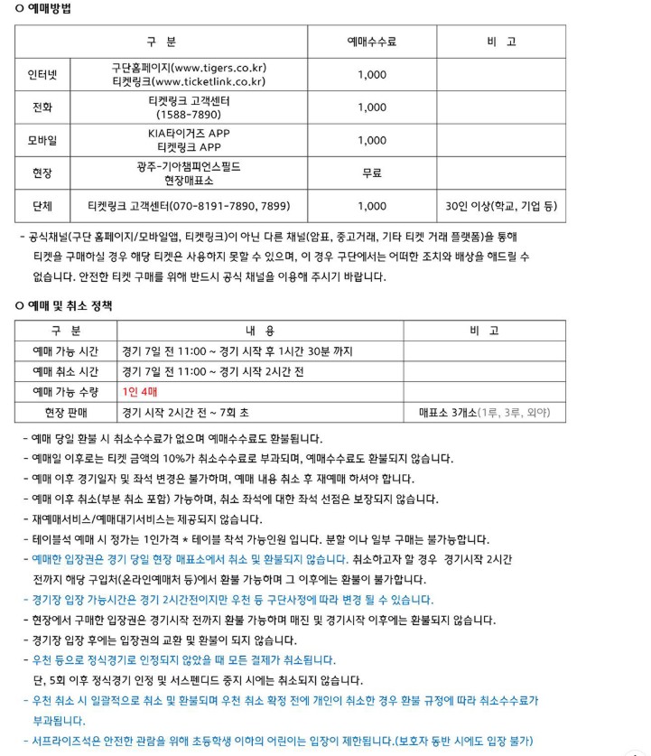 ✅ 예매처: 기아 타이거즈 공식 홈페이지 / 티켓링크