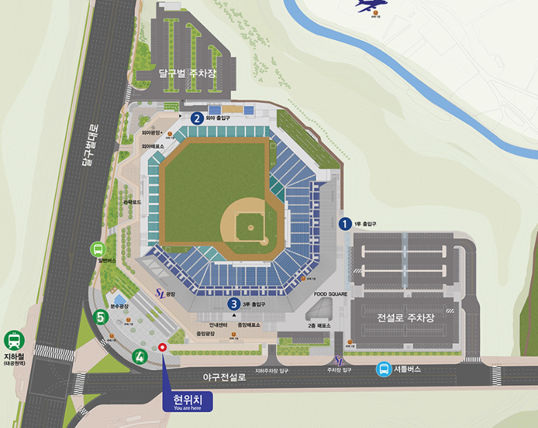 - 야구장 내: 총 약 1,097대 (지상 852대, 지하 245대) 주차 가능 / 요금 약 2,000원