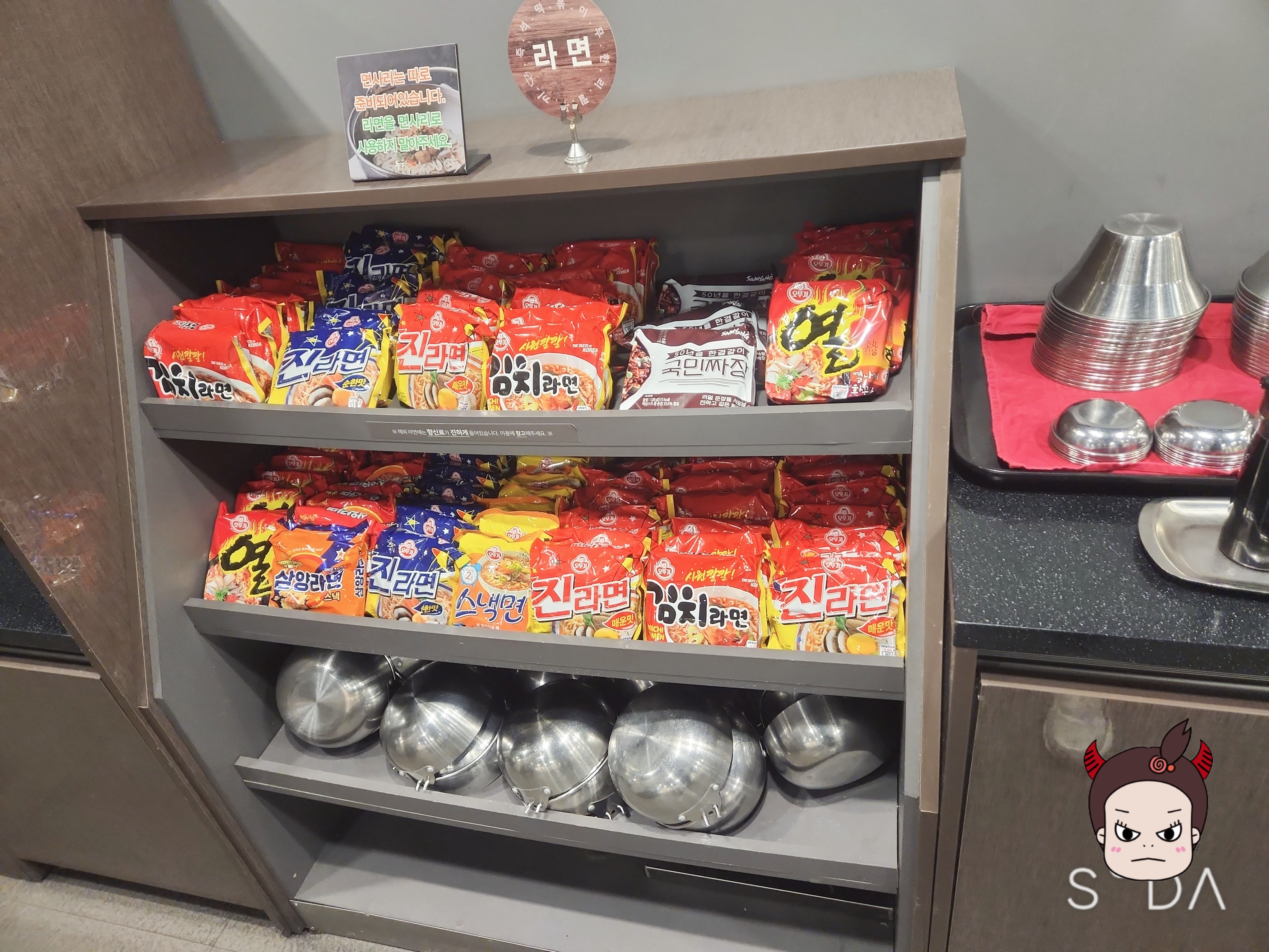 라면은 따로 끓이셔야 합니다. 냄비도 밑에 같이 있으니 드시고 싶으신 분들은 드세요!!