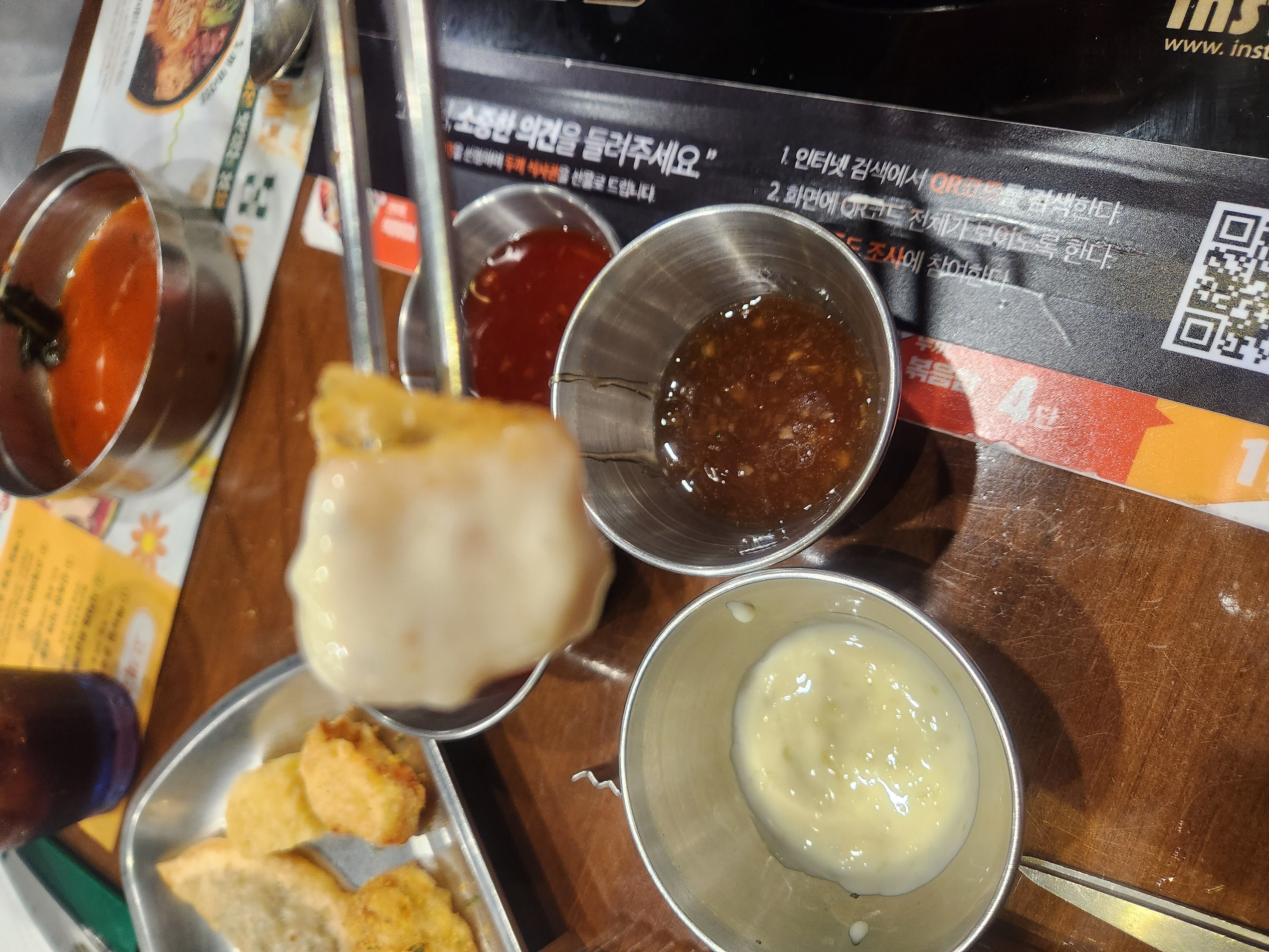 소스도 치킨양념, 허니 간장, 갈릭, 청약마요 등등 나왔는데 전부 별로 맛없어요! ㅋ