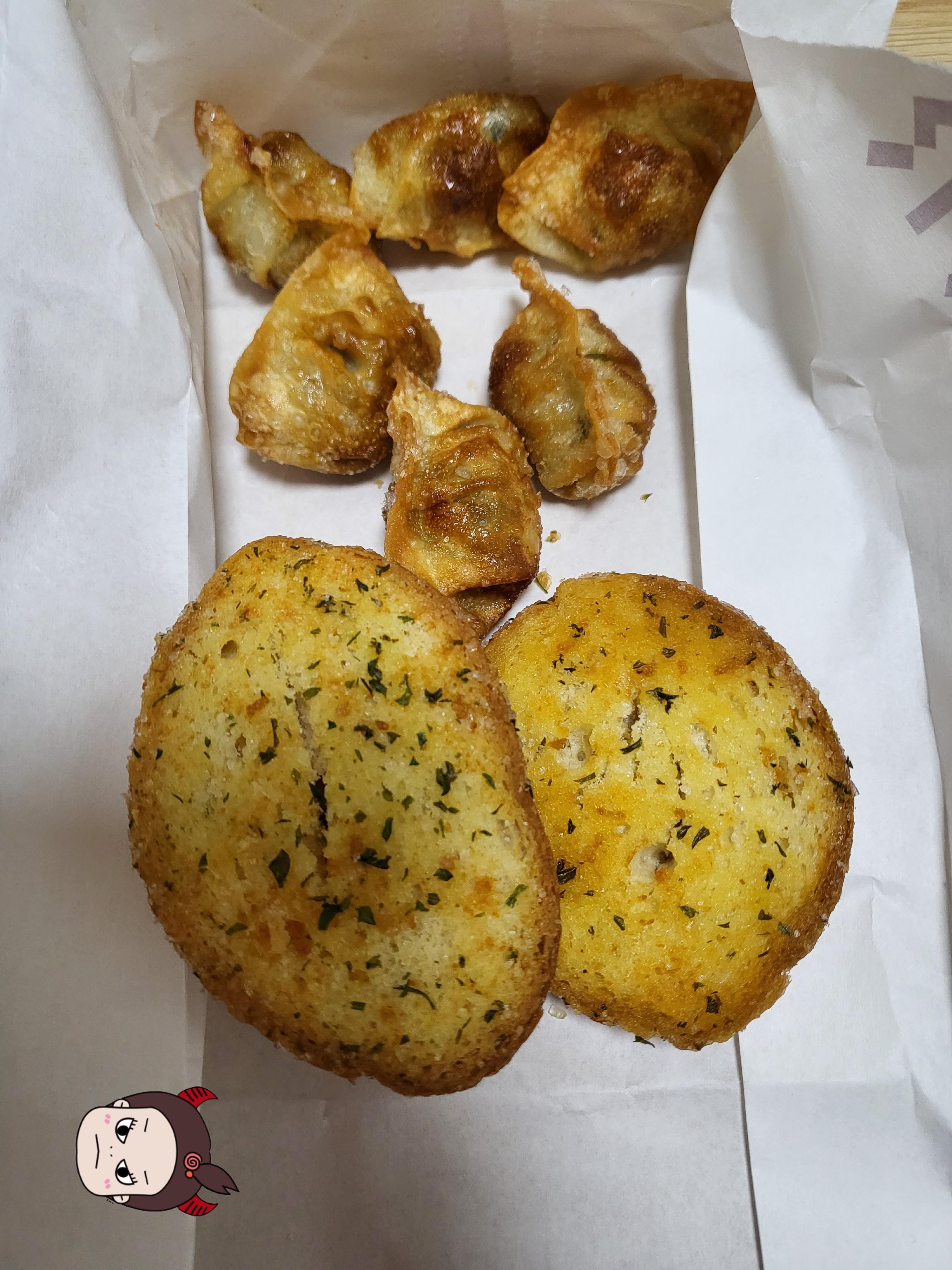 그리고 로제 떡볶이는 만두피 튀김이 아니라 마늘빵을 주십니다.