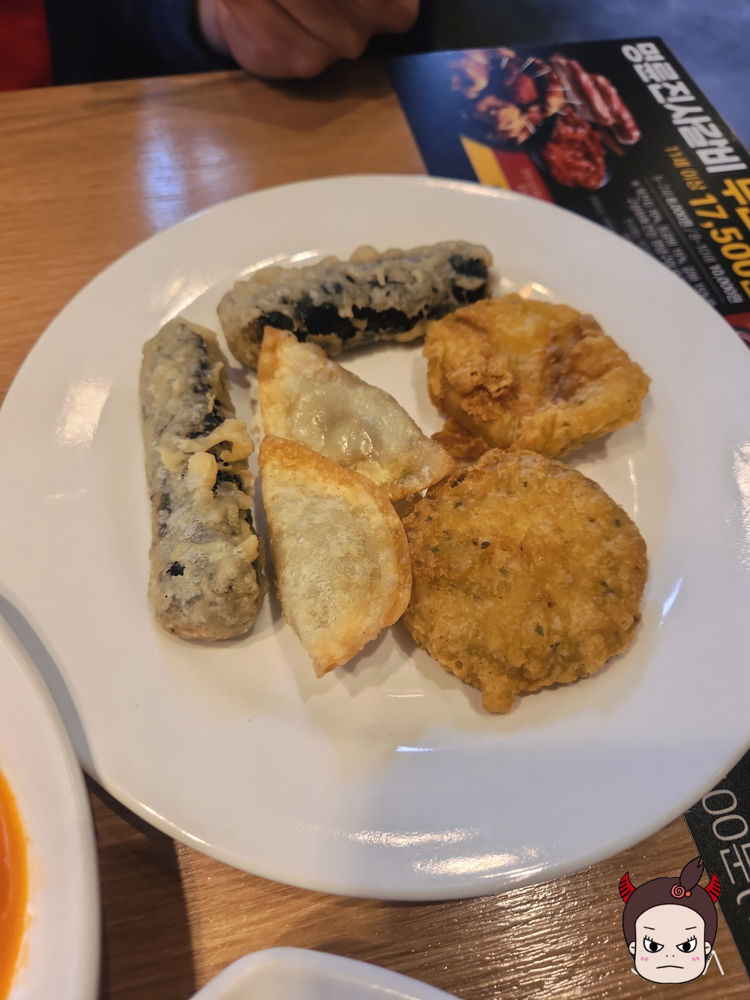 여기에 더불어 몇가지 튀김류, 떡볶이, 잡채, 묵, 밥, 음료수까지 모두 포함되어 있습니다.