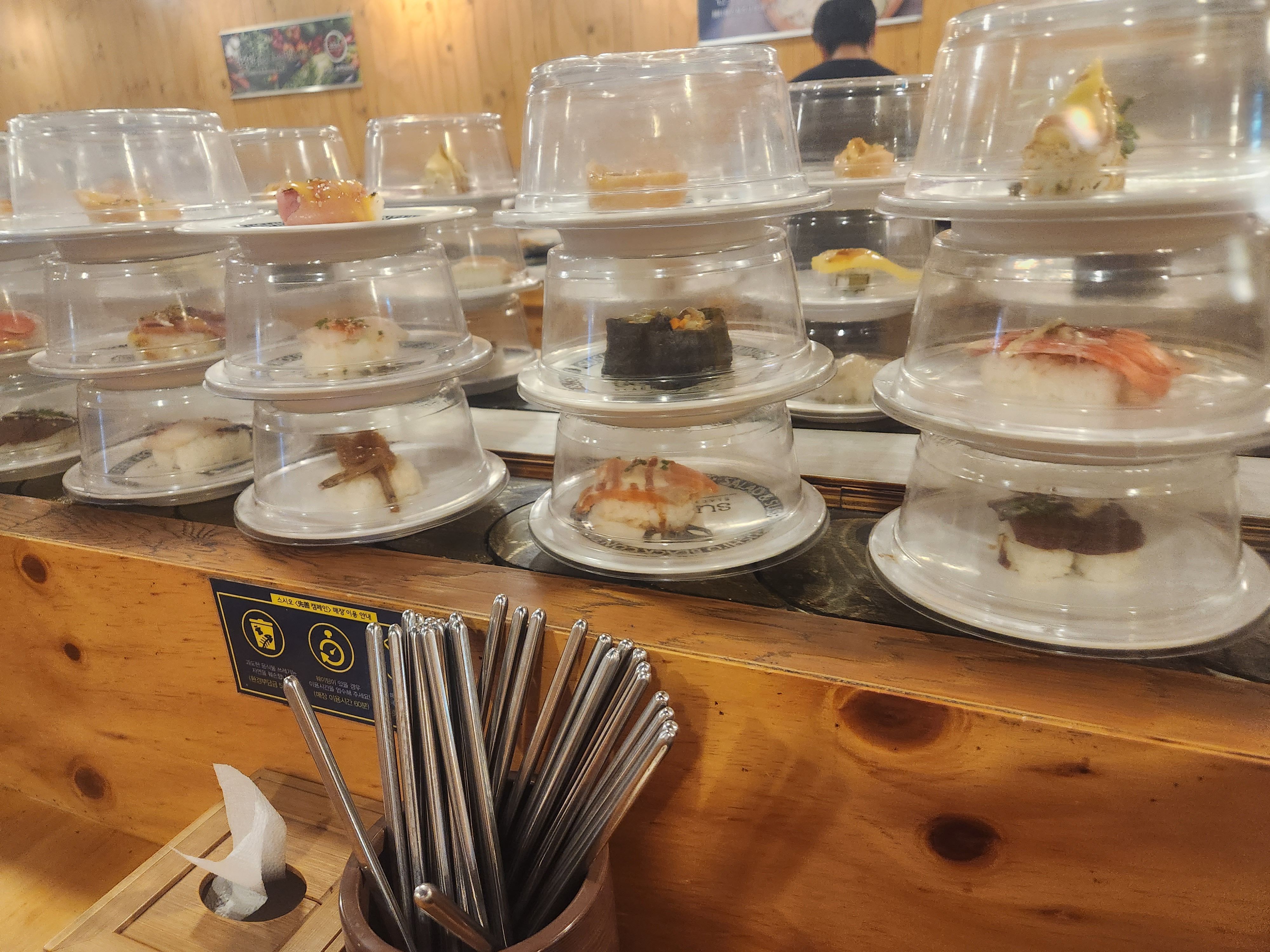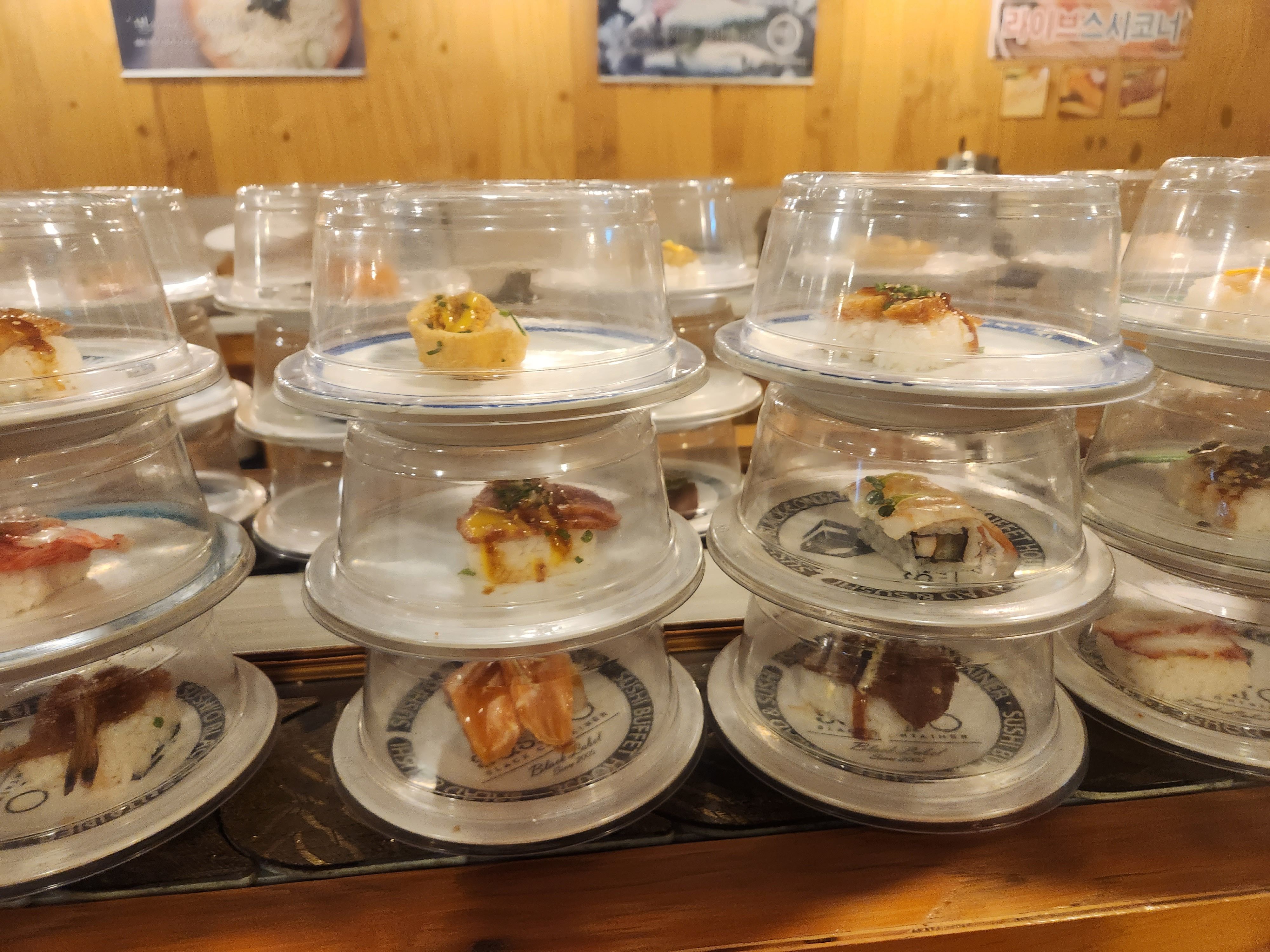 회전초밥 레일에 초밥이 무려 3단씩 올려져 있더라구요 ㅋㅋ