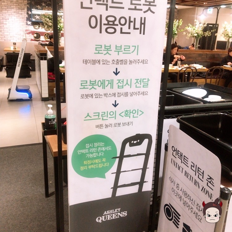 리턴 존에 가셔서 그릇 반납하셔도 되고 로봇을 불러도 상관없는데