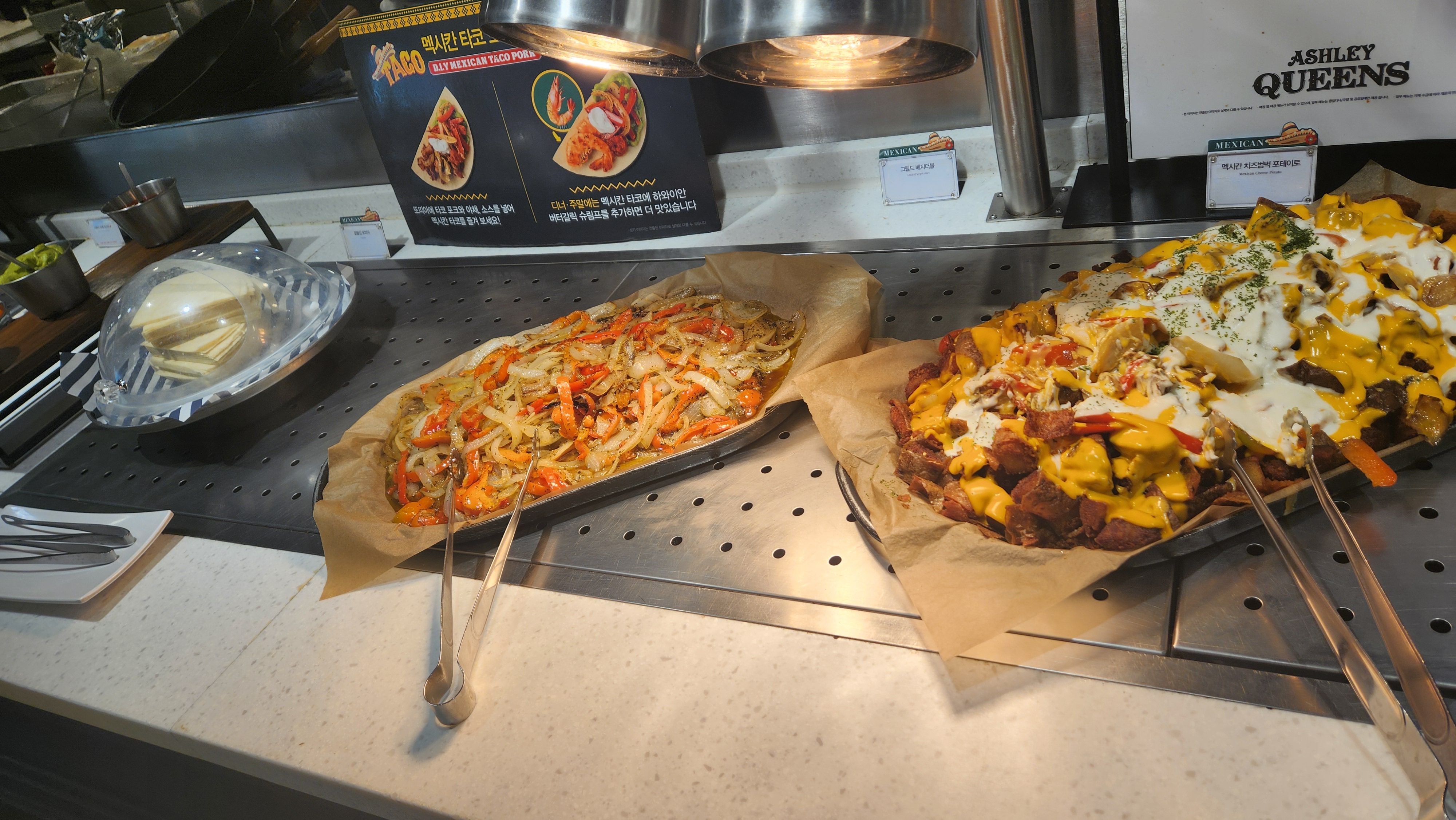타코 재료인 고기도 있구요. 치즈 신메뉴 였나? 치즈 소스 뿌린 감자도 있습니다.