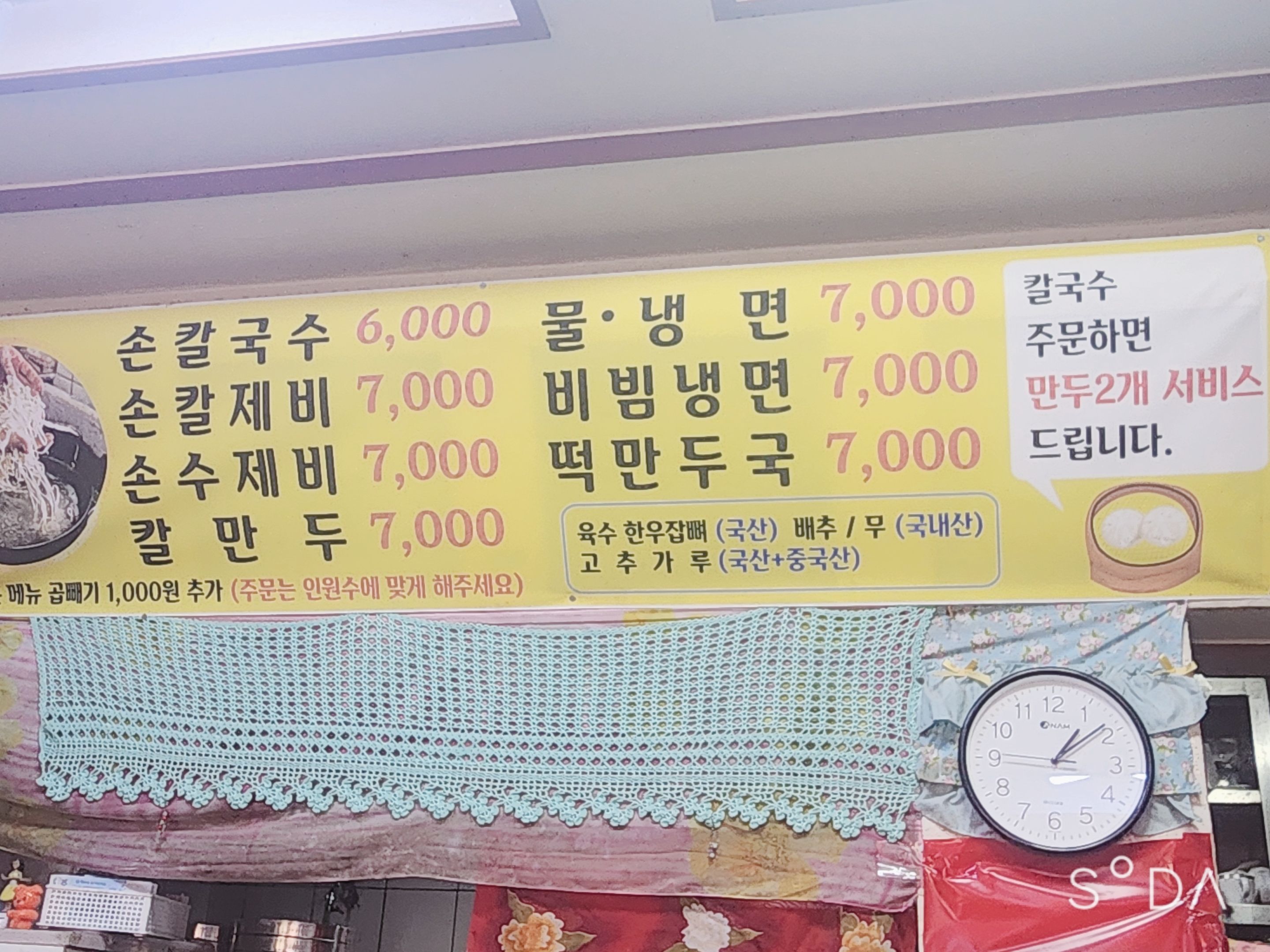 (칼국수 주문하면 만두 2개 서비스라고 적혀있는데 저희는 따로 못받았어요;)