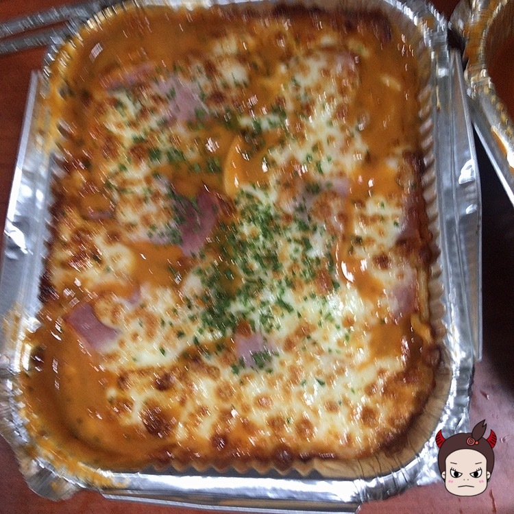 짠! 영롱한 에그콘피자와+로제스파게티+리뷰이벤트인 떡볶이 한 세트입니다.