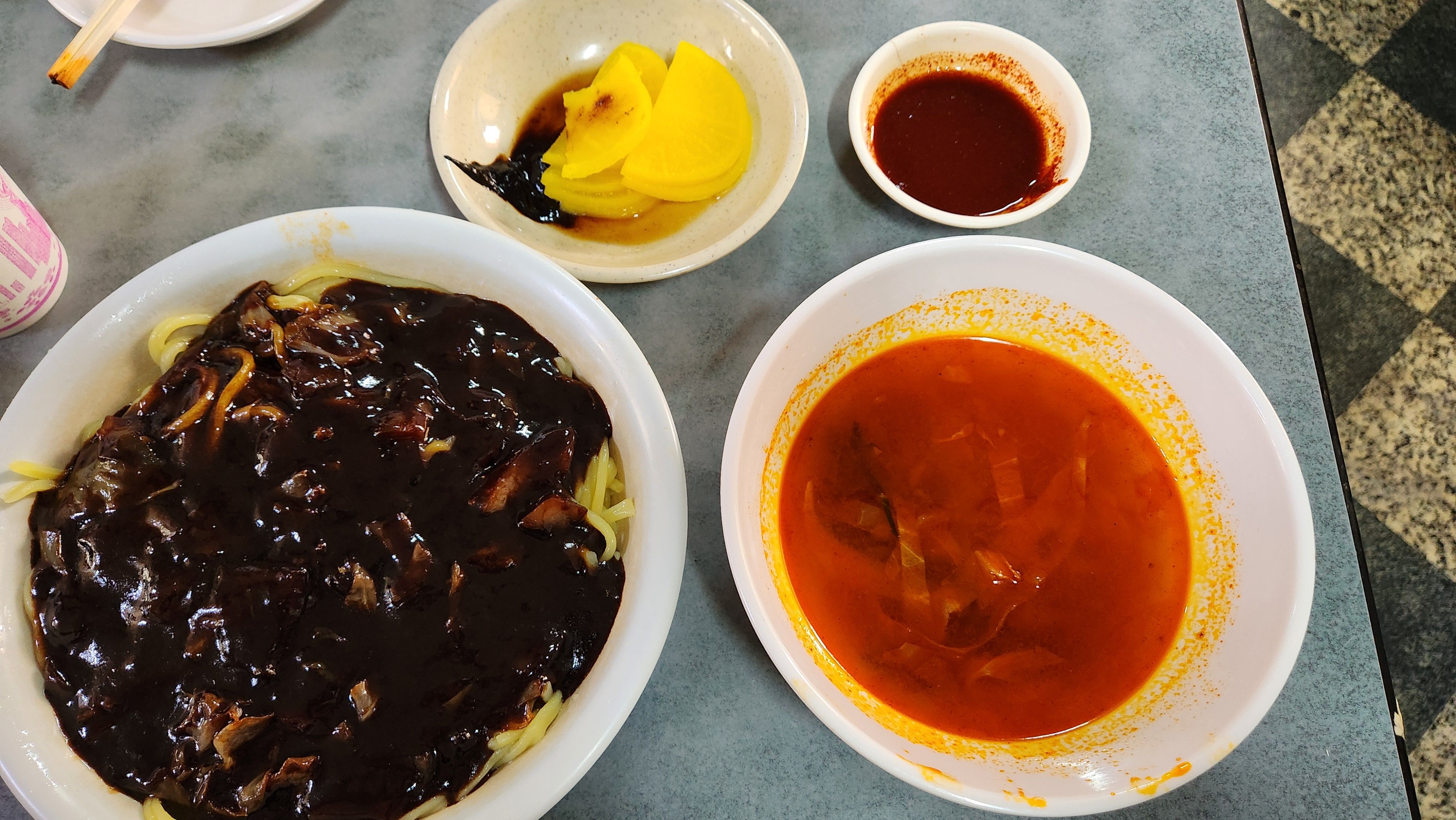 그리고 나머지 수저, 앞접시, 단무지, 물은 모두 셀프!! 각자 알아서 챙겨주세요.
