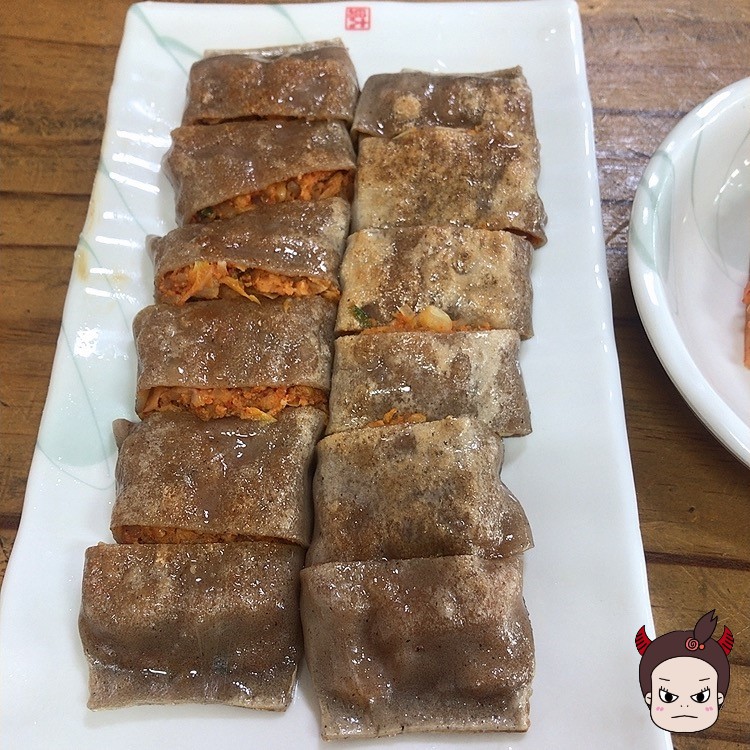 쫄깃쫄깃한 메밀피와 적당히 매콤한 김치소가 들어 있어서 아주 환상적이였습니다.