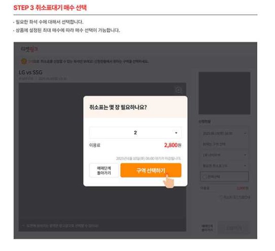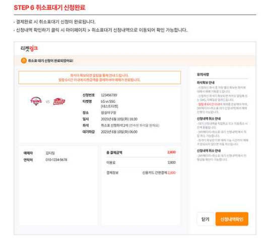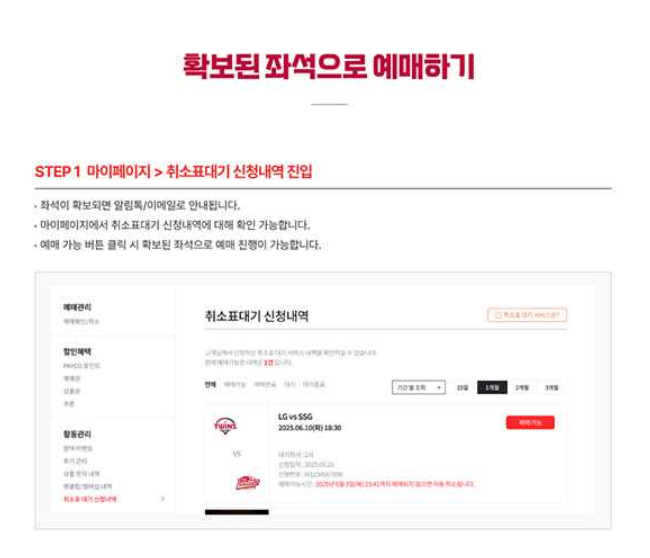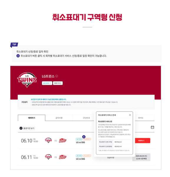 • 매진된 경기만 ‘취소표 대기 신청’ 가능