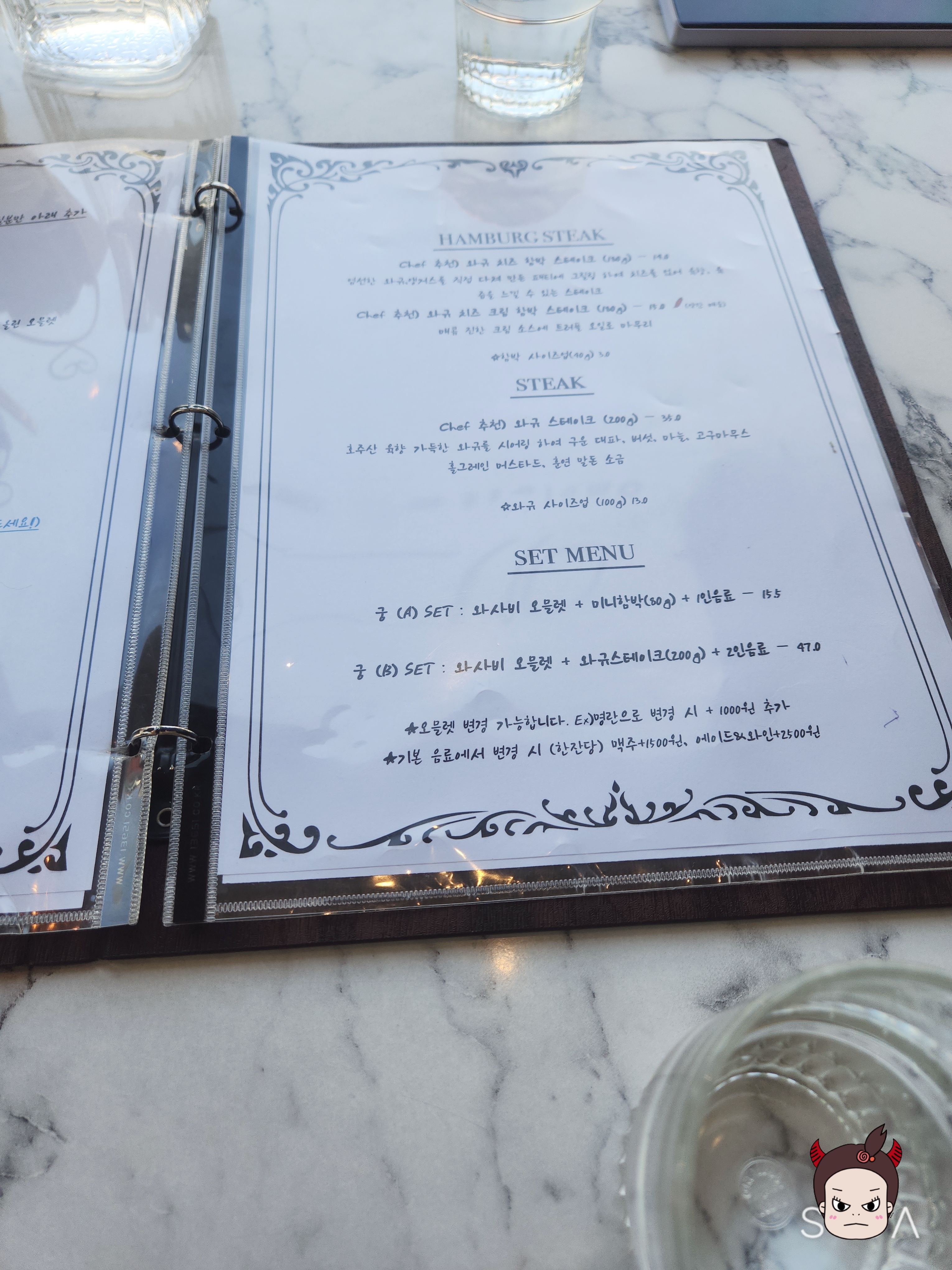 메뉴판은 참고해주시구요!