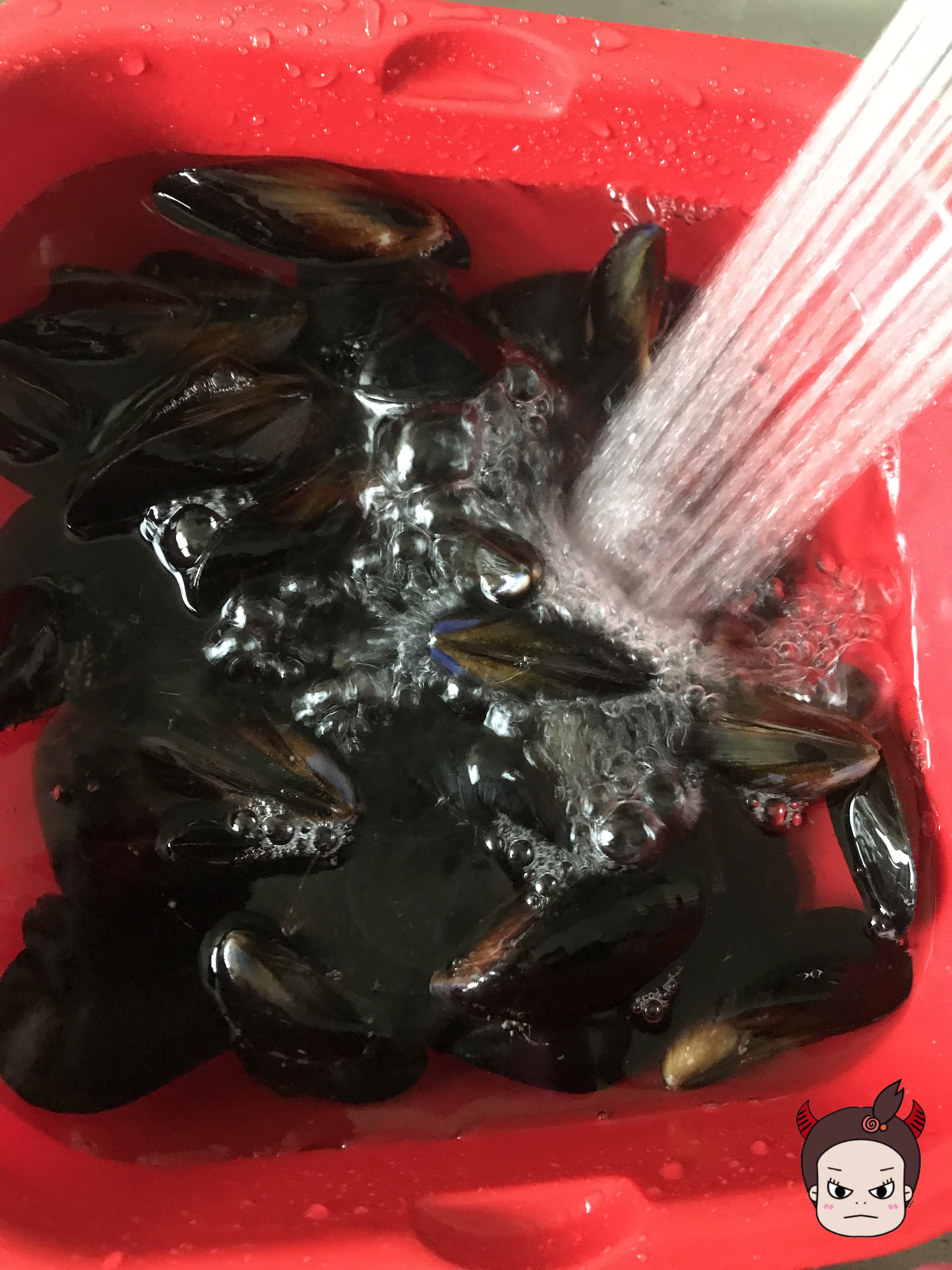 홍합은 따로 해감 필요없이 흐르는 물에 뽝뽝 씻구 칫솔 등을 이용해서 껍찔을 닦아주세요! 그리고 수염은 가위로 잘라주시면 됩니다.