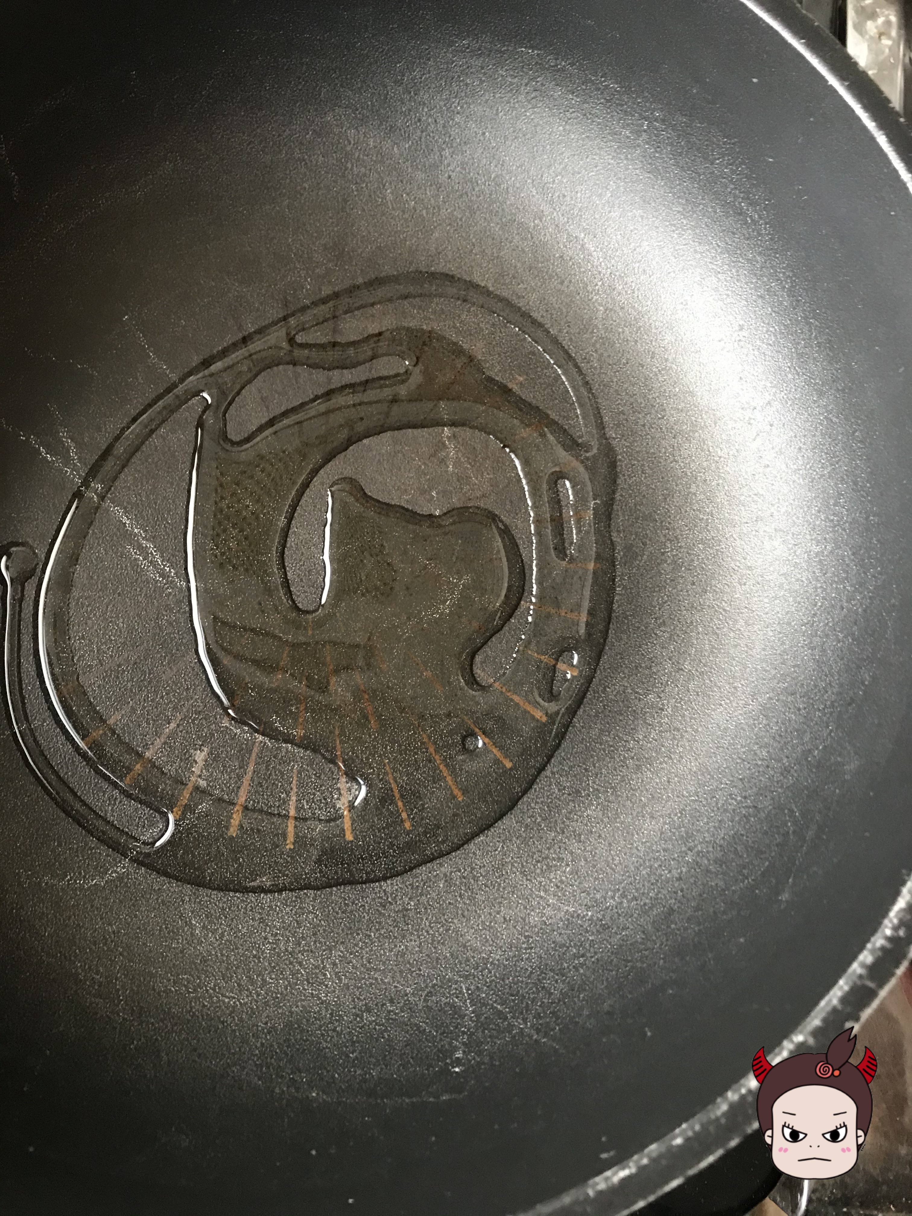 그런 다음 둥근 프라이팬에(프라이팬 새거 갖고싶어요ㅠ) 기름을 적당량(2회전 정도) 뿌려주시구요