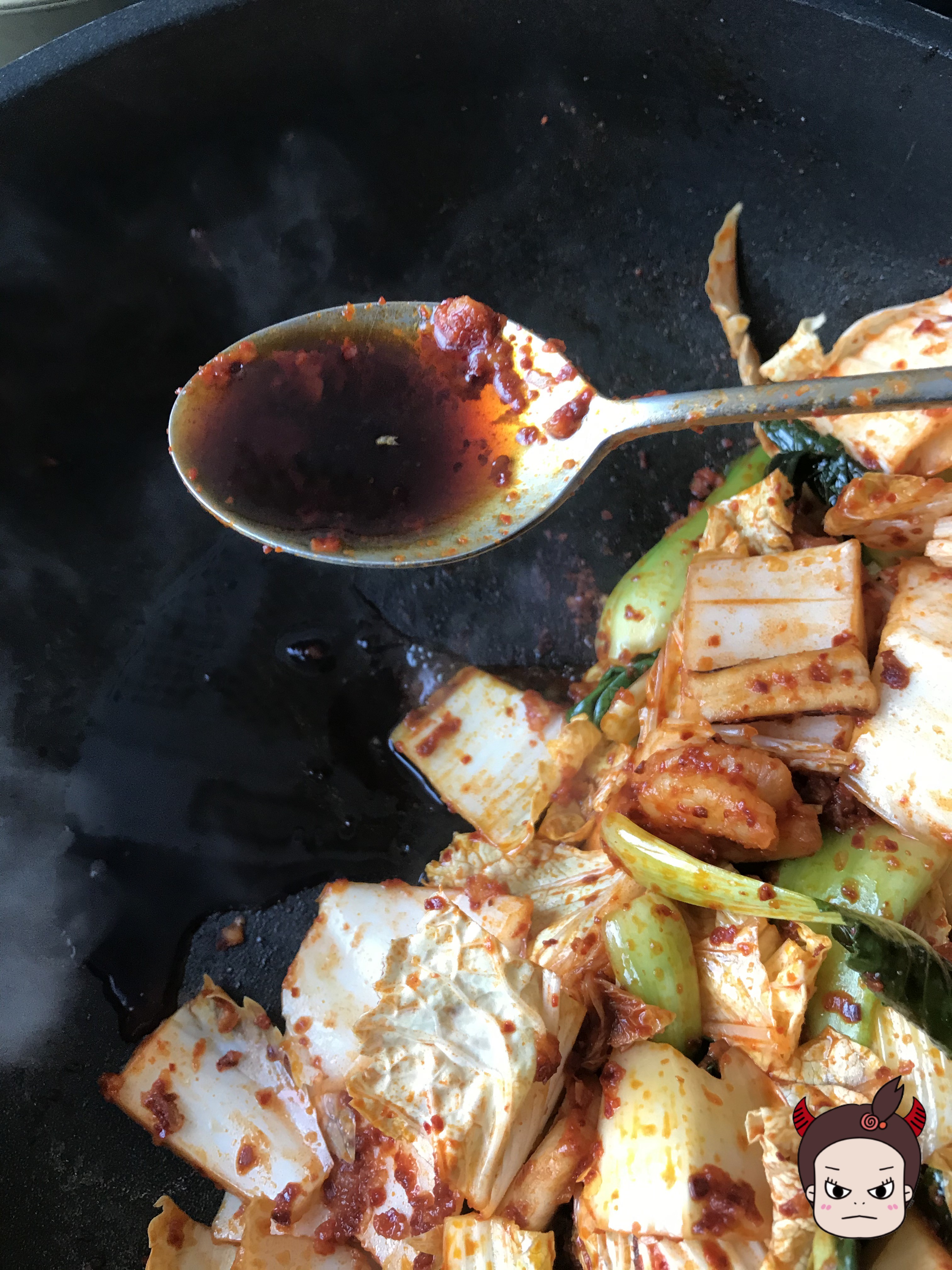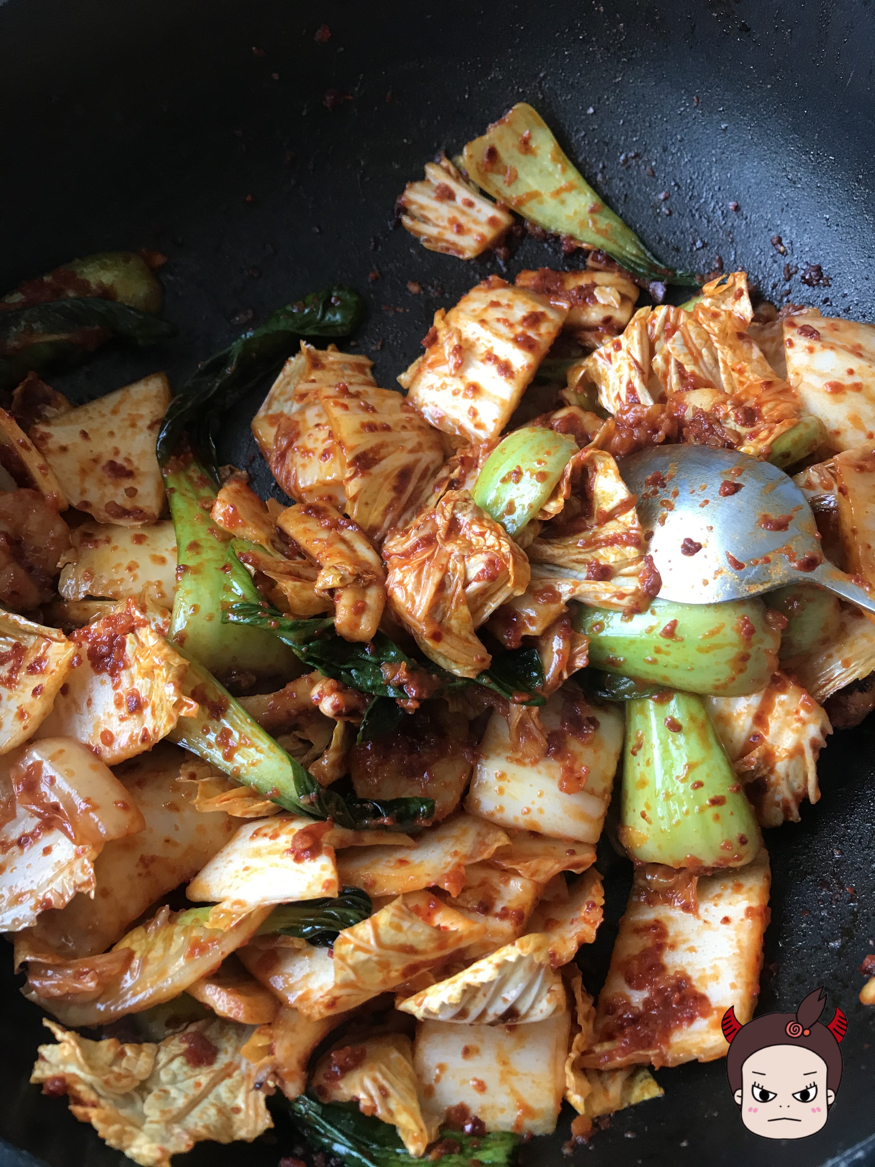 청경채, 배추를 때려 넣었어요............! 청경채, 배추를 넣고 들들 볶아줍니다.