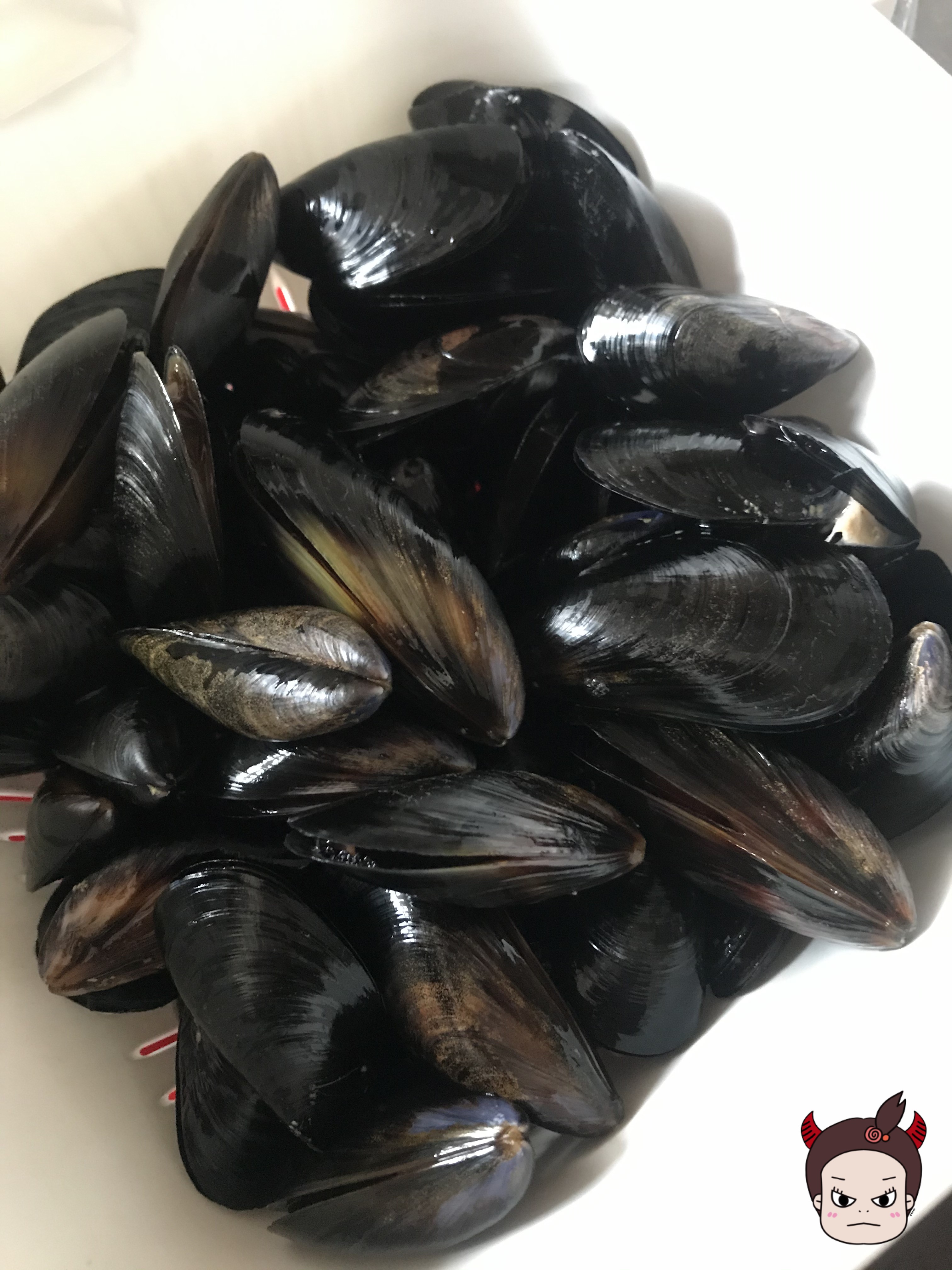 우선 먼저, 홍합을 손질합니다. 놀고 있는 우리 돌배기에게 홍합 손질을 맡기는 거에요.