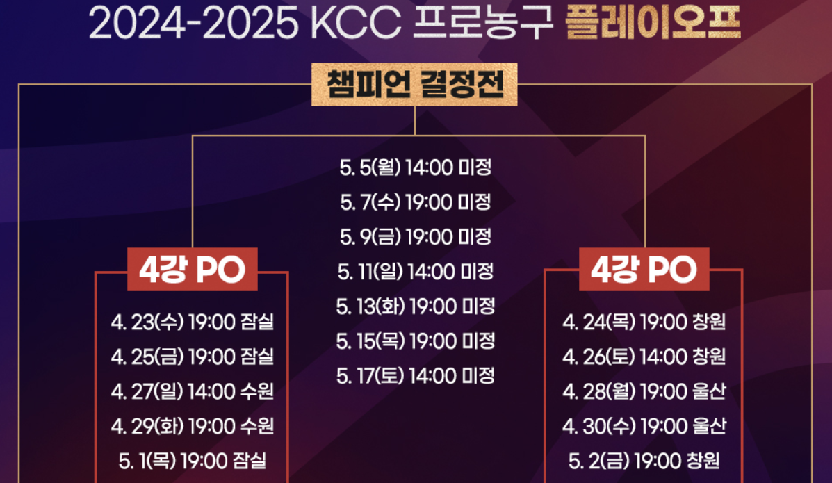 2025년 KBL PO는 4월 셋째 주부터 5월 중순까지 열리며, 6강-4강-챔프전 순으로 치러집니다.